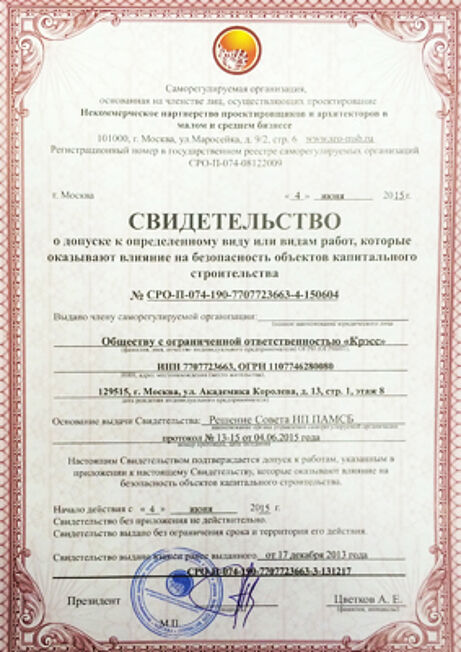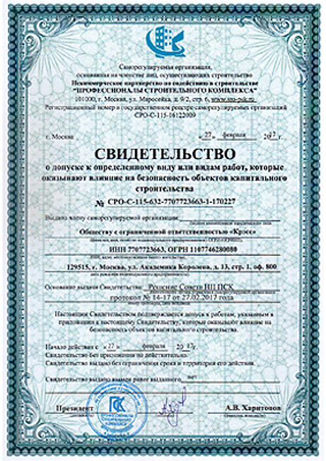 Свидетельство о допуске к определённому виду и видам работ, которые оказывают влияние на безопасность объектов капитального строительства