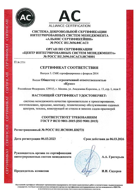 Независимая оценка, как сертификация органом по сертификации «Альянс Сертификейшн», является важным и незаменимым элементом, если мы сами предъявляем самые высокие требования к себе и нашим услугам. Вот почему мы сертифицированы по ГОСТу ИСО 9001:2015.